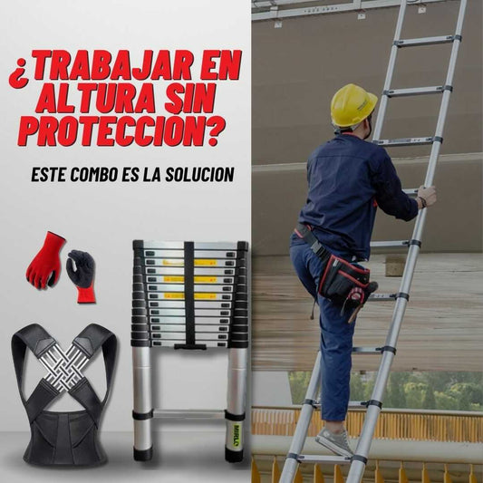 “Combo Pro Altura: Escalera Telescópica + Guantes + Corrector de postura”