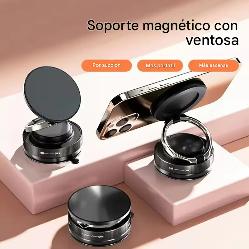 Imanes potentes que mantienen tu teléfono seguro y estable, evitando caídas. Compatible con la mayoría de smartphones y tablets de cualquier tamaño.