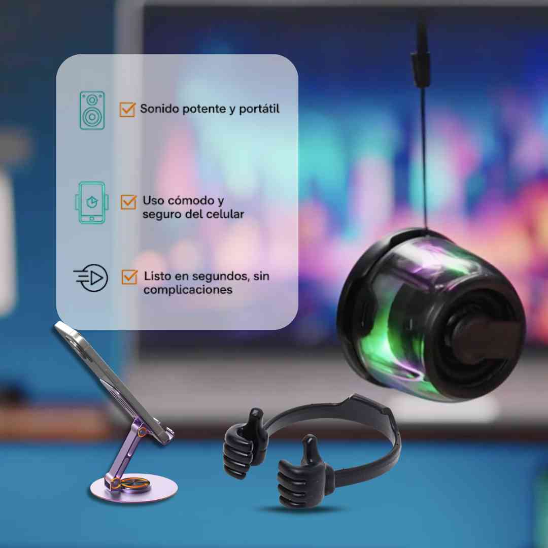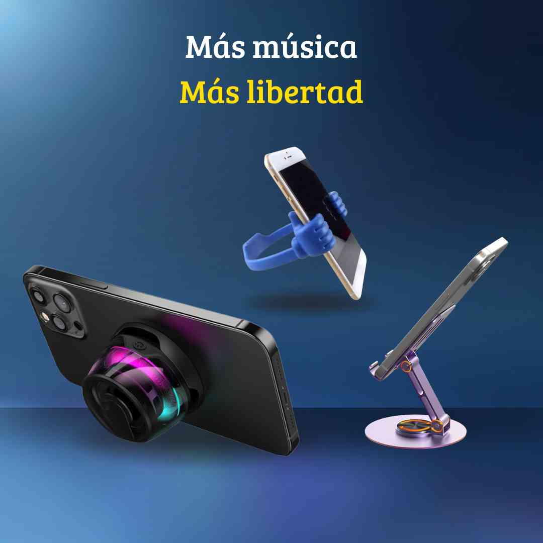 “Sonido y comodidad en un solo combo” ofrece música potente y un uso más práctico del celular, combinando entretenimiento y funcionalidad en tu día a día.