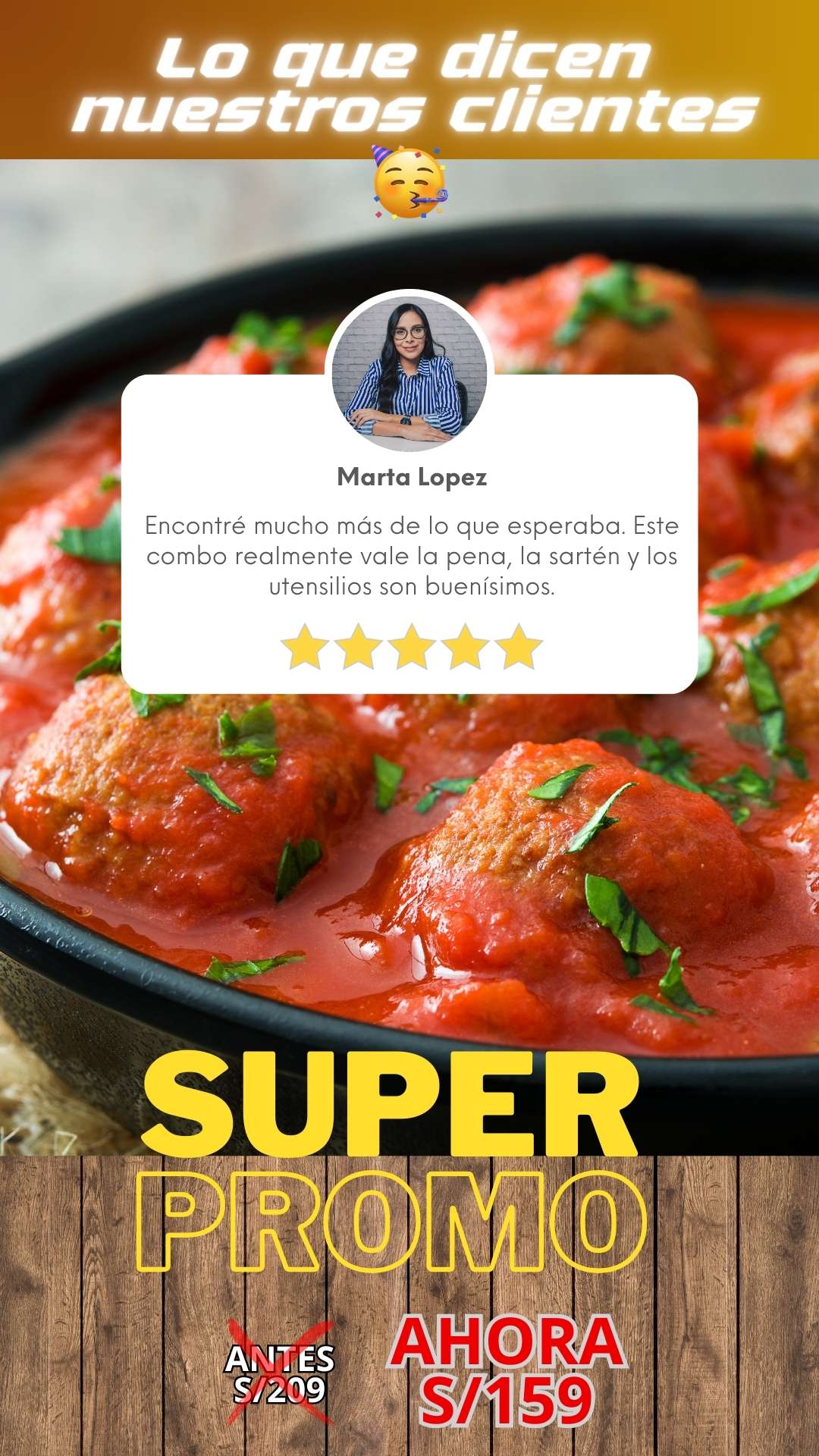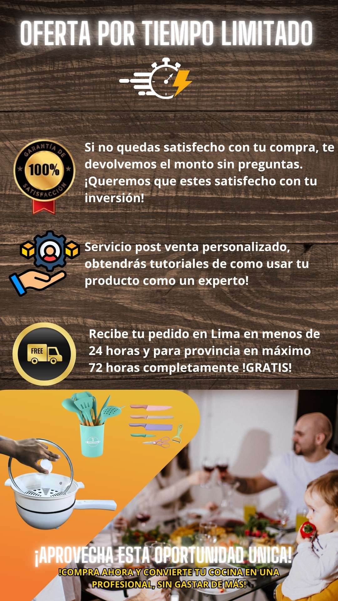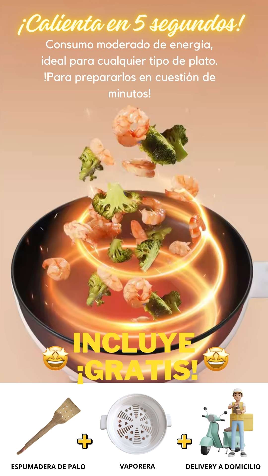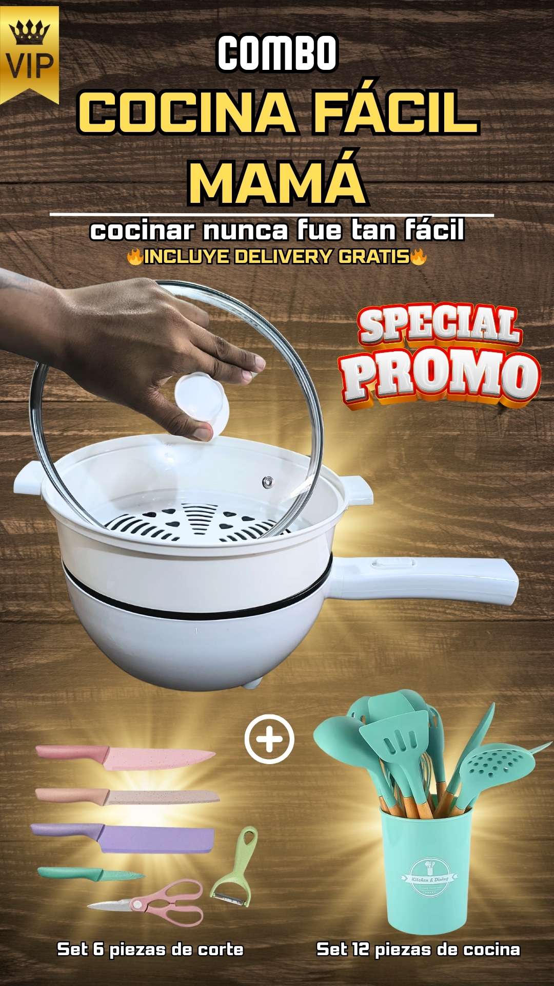 De nuestros clientes destacan lo práctico que es tener todo en un solo combo: sartén eléctrica, cuchillos y cucharones — ¡cocina completa desde el primer uso!