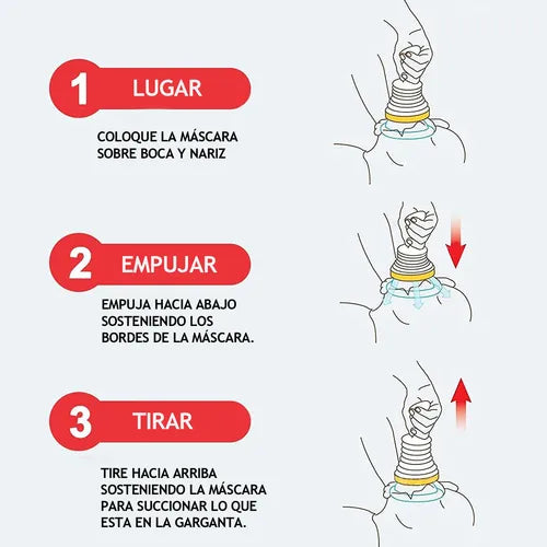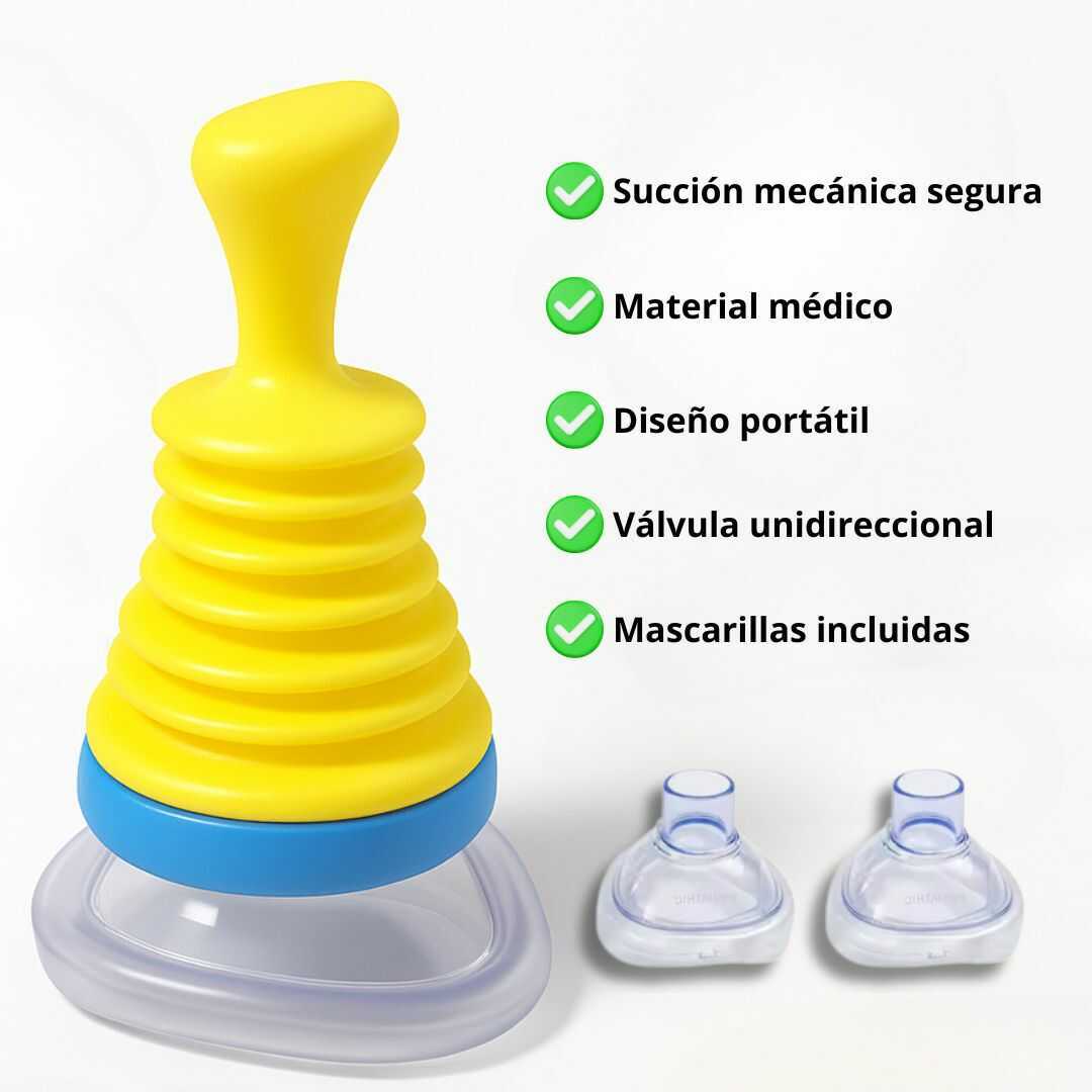 El dispositivo antiasfixia libera las vías respiratorias en segundos con su sistema de succión. Seguro y fácil de usar, es la solución confiable en emergencias de asfixia.
